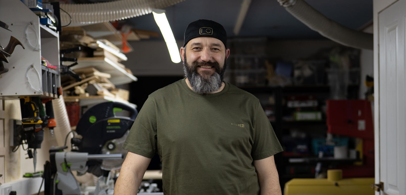 I'm a woodworker, designer and artist, working in my workshop.